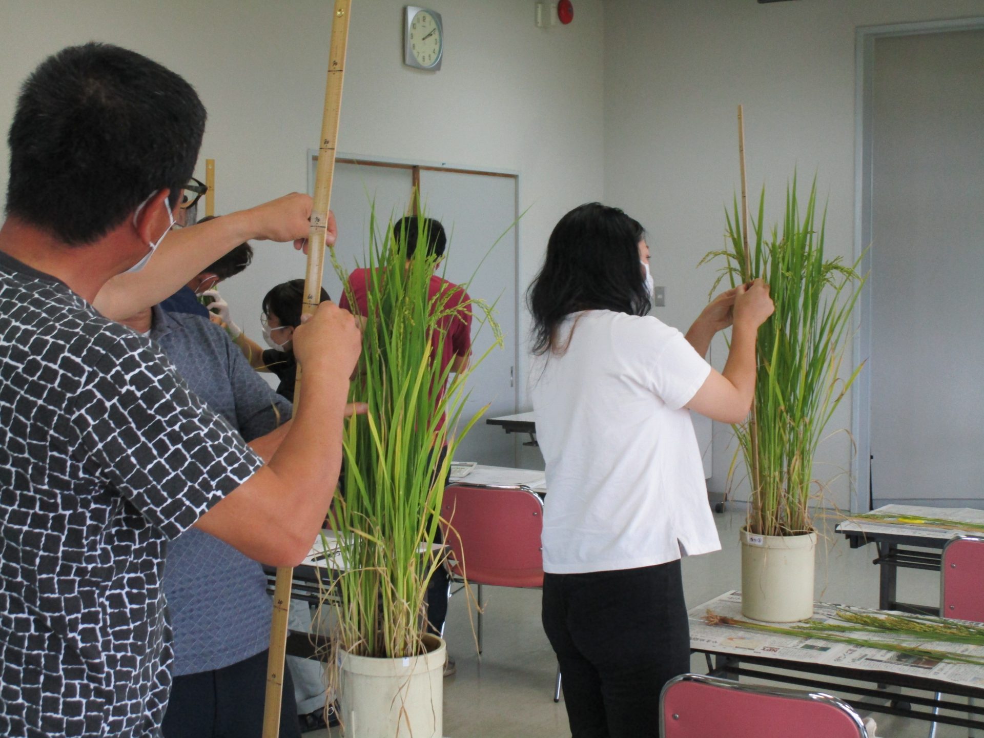 ポットや圃場での生育調査、先進圃場の視察や、地元企業や先輩農家との交流を行います。