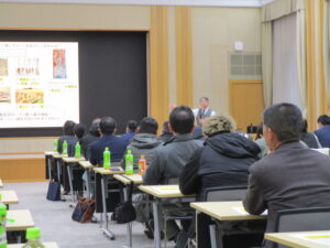 演題は「情報を活用した高温障害に打ち勝つための戦略~品質・収量向上とコスト低減のために~」です。生産者様やJA関係者など、約100名にご参加いただきました。